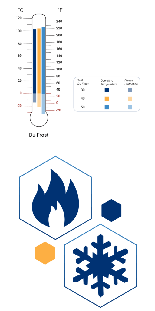 The DuBois technical team recommended Du-Frost, our innovative inhibited propylene glycol heat transfer solution. Du-Frost is formulated with a high-quality inhibition package that is safe on all metals, excluding aluminum. The low acute toxicity of propylene glycol makes it a safer-to-use alternative to toxic ethylene glycol, while a phosphate-based inhibitor controls corrosion of ferrous and non-ferrous “yellow” metal surfaces. While commonly used as a heat transfer fluid in closed-loop and cooling systems, its balanced inhibitor package and material compatibility made Du-Frost well suited for the customer’s flushing process.